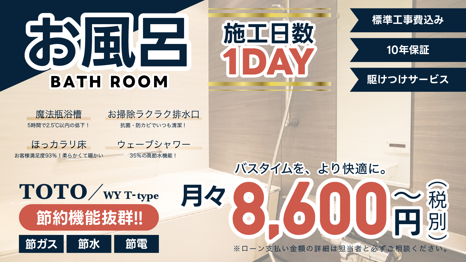 お風呂や水回りも迅速対応。暮らしの不便を最小限に。