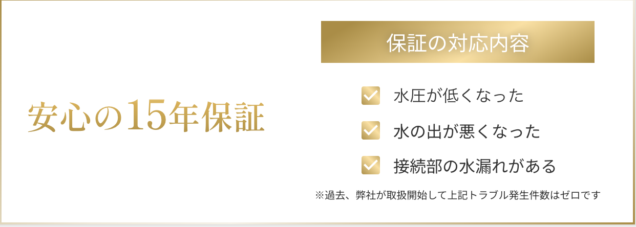 - 耐久年数が10年以上で15年保証がついている(ウォーターデザインワールド独自)