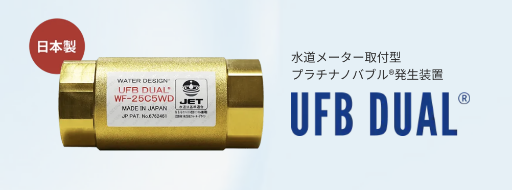 - UFB DUAL®を通る水が全てプラチナノバブル®生成機構を通る
