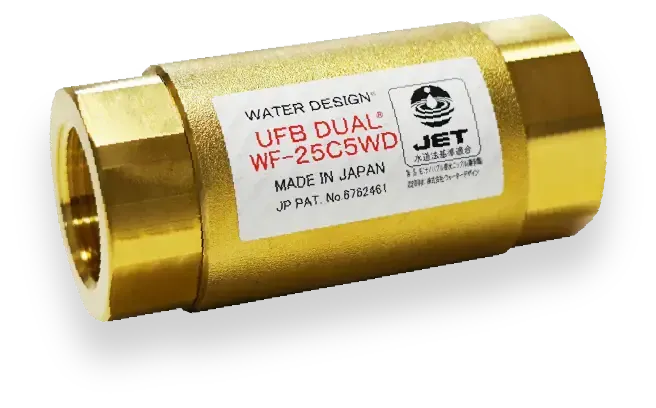 UFB DUAL®は特許技術のDUAL構造により、水圧・水量ともわずか5%以内の低下におさえ、シャワーはもちろん、キッチンや洗面など家中の水圧をキープしストレスなく使用することができます。