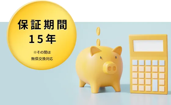 耐久年数は10年、保証期間はさらに15年と、一度の設置で長くご使用いただけます。
