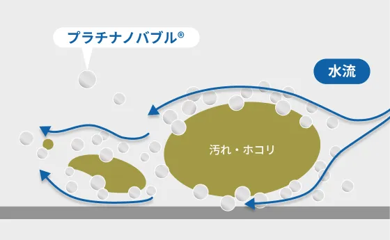 - 汚れを吸着しやすいマイナスに帯電したプラチナノバブル®で高い洗浄力