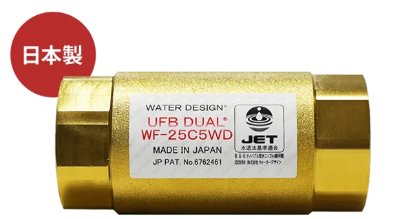 ナノバブルが発生する給湯器製品では、給湯器の出口(外側)にナノバブル発生機構がついている製品も少なくないので、給湯器自体も長持ちさせたいのであれば、UFB DUAL®がおすすめです。